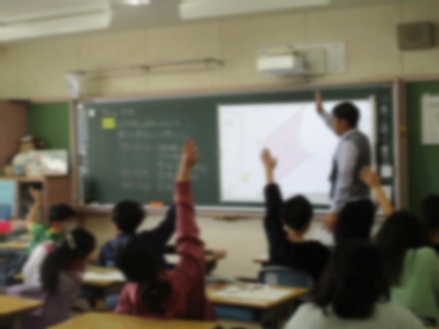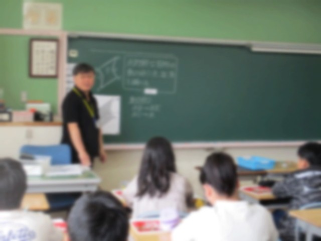 算数の少人数授業は3学級を5つのグループに分けて学んでいます。「点対照」についての学習です。みんなで考えたり、発表したり、友だちと相談したりしていました。