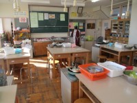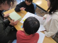 こちらはサポートルームのプレイルームで行った卓球クラブです。一人3球のうち何点をとれるかというゲームでした。高得点はやはり難易度が高め。学年に応じて的も変えていました。