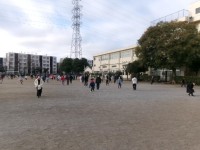 なかよし班ごとに長縄を使って跳ぶ回数を数えました。高学年の子どもたちが縄を回し...