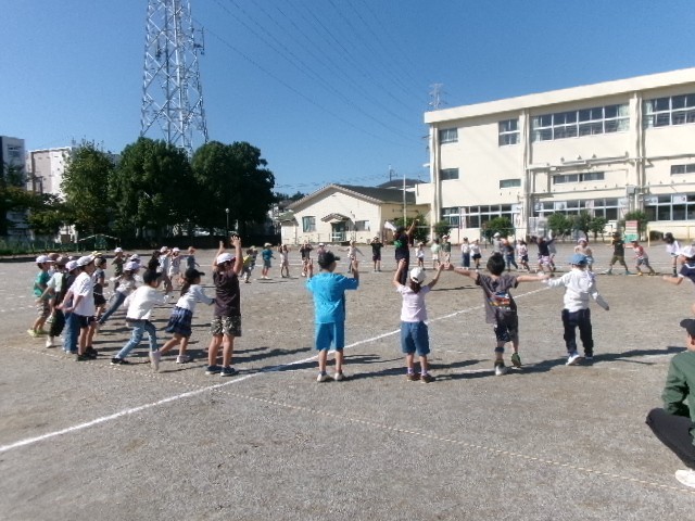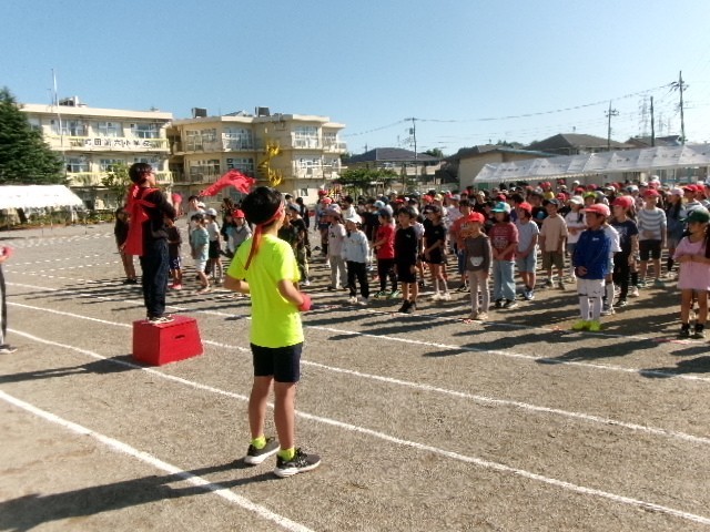 いよいよ明日は運動会です。雨で延期になっていた全体練習を行いました。開閉会式や応援の練習をしました。