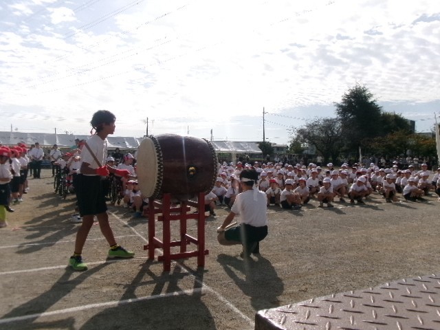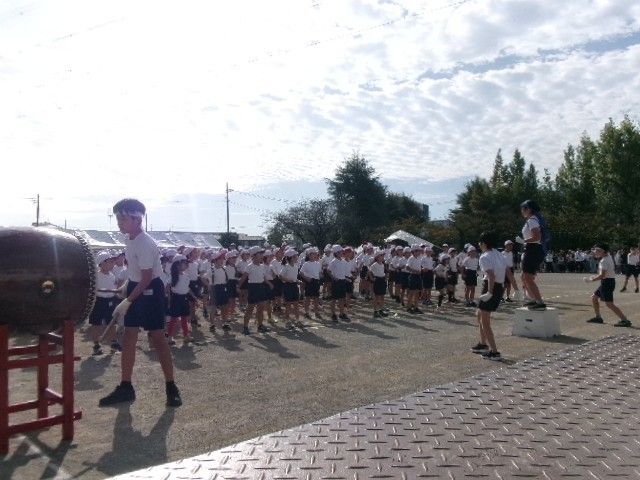 よいお天気に恵まれ、運動会が開催されました。開会式では1年生がはじめの言葉をマイクなしで元気よく言いました。応援団による応援合戦が行われ、ゴーゴーゴーを歌いました。