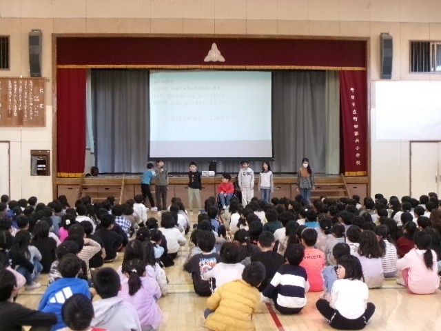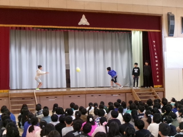 体育委員会は、運動のこつを劇で表現していました。見ている人たちが自分真似してみようと思いました。