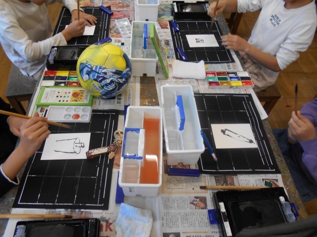 絵手紙のかき方を教えていただきました。自分が描きたいものを持参してそれを見ながら描いている子もいました。一人ひとりが味のある作品ができました。2月の町田市書写展で全員展示されます。