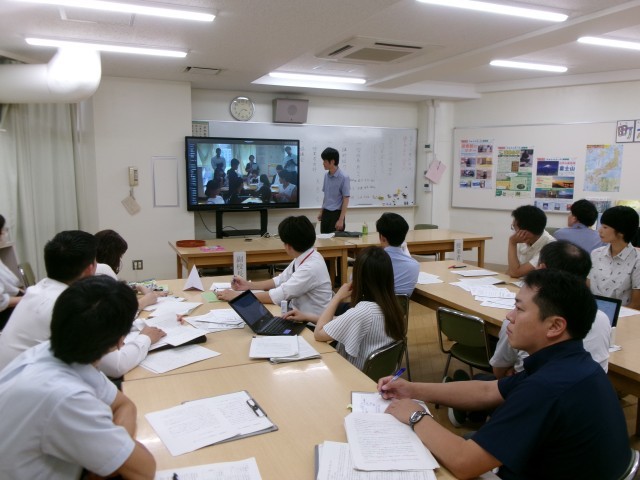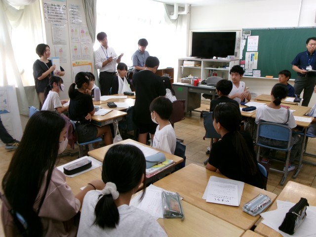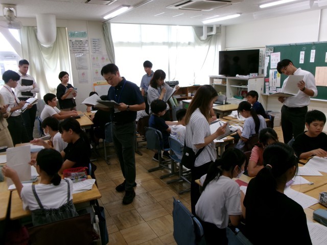 宮沢賢治の作品を読み、謎について自分の考えを友達に伝えました。グループを変えて話すうちに、友達から新たな考えを聞き、自分の考えを広げていました。普段の授業ではなかなか発表するのができない子も進んで話していました。授業後は、講師の細川太輔先生に指導・講評いただきました。