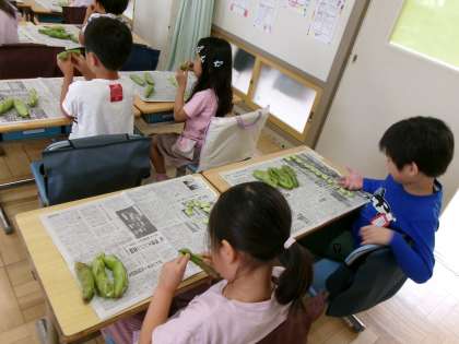 この日の給食に、1年生がむいたそら豆が出ました。おいしくいただきました。