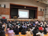 3年生が自分たちで調べて、自分たちで作った地域安全マップを全校集会で紹介しました。寸劇を交えながら楽しく地域の安全について教えてくれました。