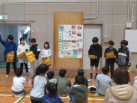 発表集会の後、そのまま体育館で発表会が行われました。各グループが自分で作った新聞を発表しています。たくさんのおうちの方にも来ていただき、子供たちは嬉しそうでした。どのグループもしっかり発表できました。