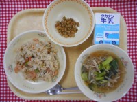 焼きそばは、もやしやキャベツなどの野菜がたっぷり入って、麺を油で揚げておいしさを吸い込ませた、給食ならではの料理です。案の定大人気で、どのクラスも早々に食缶が空になっていました!人気の焼きそばに組み合わせたのは、チーズいももちです。じゃがいもをゆでたあとつぶして、片栗粉やチーズを混ぜ、形をつくってオーブンで焼きました。新メニューでしたが、レシピがほしいです!と言ってくれるほど好評で嬉しかったです。
