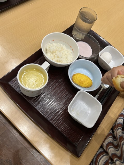 朝食はバイキング方式です。パン派、ご飯派、両方食べる派色々です。とても美味しそう。いただきます。
