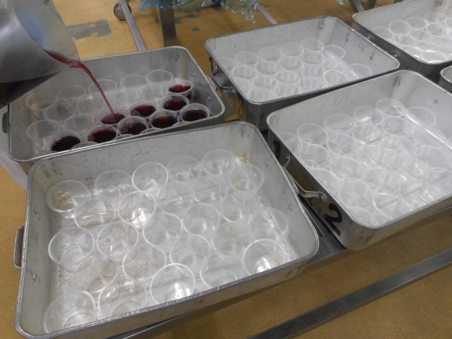きょうは、目の愛護デー献立です。目によいといわれる栄養を多く含んだ食べ物を使って献立を立てました。目によいといえば、ブルーベリーが有名です。アントシアニンという紫色の色素は、目の周りの血流をよくし、疲れをとります。給食では、ぶどうを使って手作りのゼリーを作りました。また、ジョアはブルーベリーの味にして、シールもつけてもらいました。前期最後の給食も楽しんでもらえてよかったです。