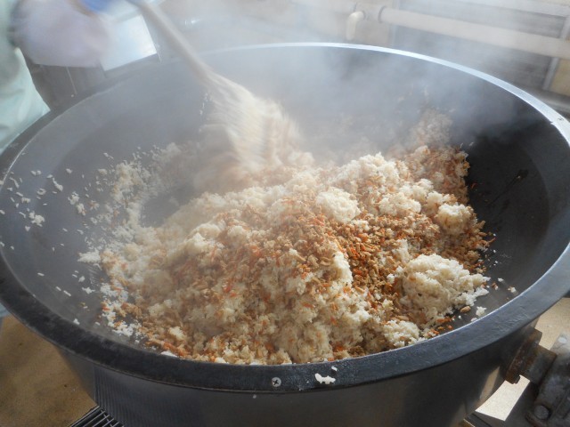 高野豆腐とは、豆腐を凍らせてから乾燥させた保存食で、大豆の栄養が凝縮された食品です。鉄は、豆腐の約5倍、カルシウムは約6倍も含まれています。きょうは細切りのものを使い、とり肉やにんじん、椎茸を加えて混ぜご飯にしました。高野豆腐の香ばしい香りと食感を楽しんでくれていてよかったです。魚は、秋から冬が旬のさばを使いました。卵を産むために栄養を蓄えている今が一番美味しいそうです。子どもたちも脂がのっていて美味しい!とよく食べてくれていました。