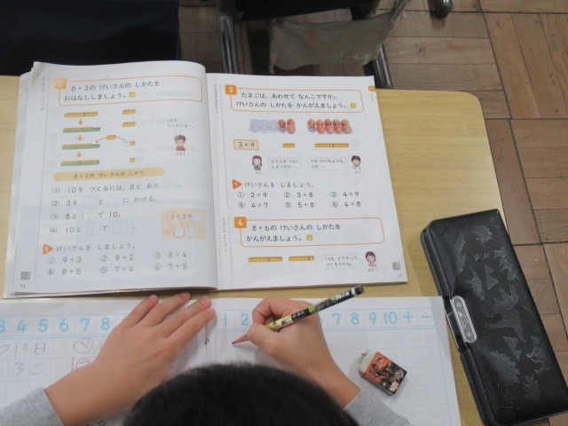 10/15 1年生 算数 ノートに書いて 公開日 2025/10/16 更新日 2025/10/16 学校生活 1年生がたし算の学習をしていました。ノートのマス目にしっかりと数字を書き込んで、計算の仕方を確認しています。どの子もノートの取り方が上手になっていました。