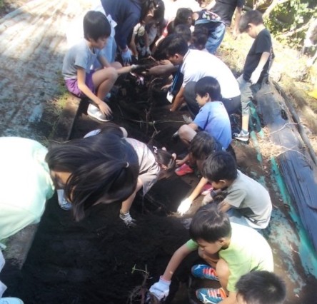 イモ掘りのために、蔓切りをお手伝いいただいた保護者の方々やSGC(園芸ボランティア)の皆さん、本当にありがとうございました。
