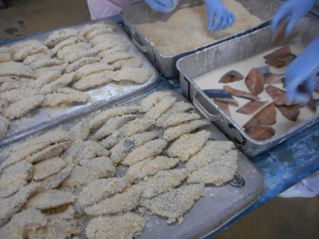 あじフライは、生パン粉と乾燥パン粉を混ぜたものをまぶして、油でサクッと揚げました。きょうは、「大あじ」という30cm以上の大型のあじを届けていただきました。大ぶりなフライで、子どもにも大人にも好評でした。ソテーやスープに入れたにんじんには、風邪を予防するβカロテンという栄養素が含まれています。鼻や喉にある粘膜が健康だと、空気中のウイルスをバリアしてくれます。急に肌寒くなり、体調を崩しやすい時期です。食べる前にはしっかり手洗いをするように声掛けをしました。丈夫な身体作りのためにも、給食をしっかり食べてもらえるようにしたいです。