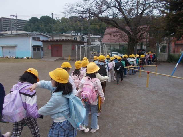 子どもたちは、出発式できちんと話が聞けて、歩道の歩き方もとても上手です。ちょっと寒いですが『秋さがし』を楽しんで来ましょう。