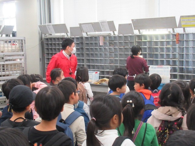 今日は町田郵便局へ生活科見学に行きました。実際に郵便物を仕分けしているところを見学させてもらったり、消印を猛スピードで押していく機械を見せてもらったりして、子供たちは大喜びでした。ポストに入れたお手紙がどのようにして相手の家に届くのか。今回の見学で自分たちの生活を支える人たちのことを意識できるようになるといいと思います。かなりの長い距離を歩きましたが、みんな元気で驚きました。明日からお休みですから、ゆっくり休んでくださいね。