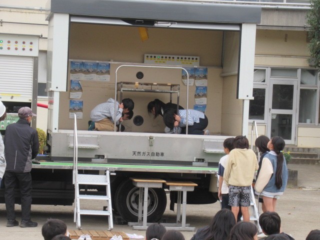 今日の避難訓練の想定は地震。4年生は起震車体験を行いました。揺れるはずのない地面が揺れるという怖さから慌ててしまうことが多いのです。子供たちにとって貴重な体験になりました。