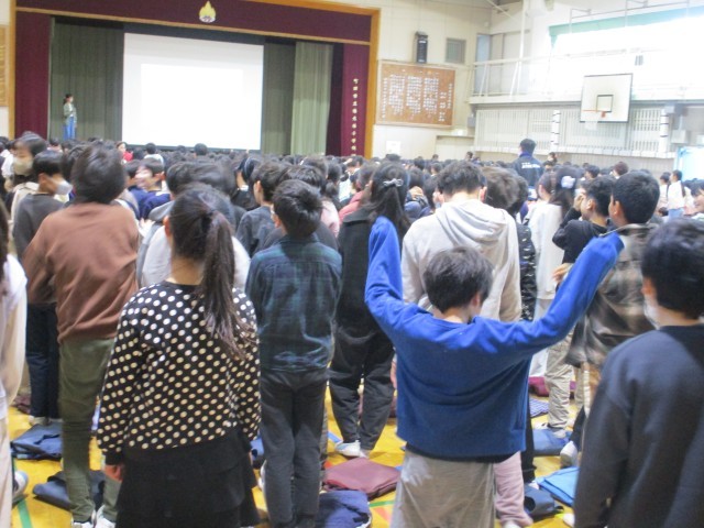 12/26 ゲーム集会(あっち向いてホイ!) 公開日 2025/11/26 更新日 2025/11/26 給食 今日のゲーム集会は「あっち向いてホイ!」参加者は首を動かすだけのゲームなのですが、みんな大喜びで参加していました。朝からみんなが笑顔になれました。