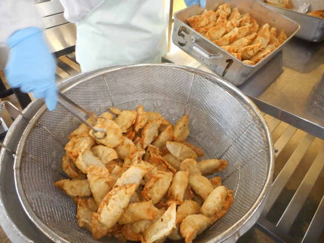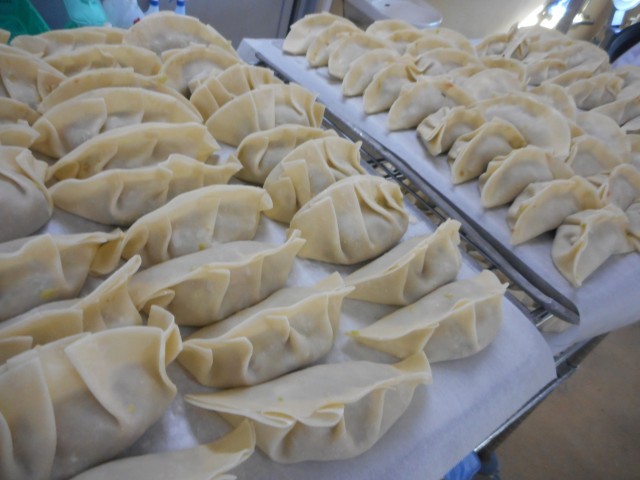 きょうはみなさんお待ちかねのジャンボ餃子です。野菜をみじん切りにし、ひき肉を入れてこね、餃子の皮に包んで油で揚げました。おかわりじゃんけんんは、案の定、各クラスで争奪戦が繰り広げられていました!皮のカリカリとした食感も楽しんでもらえてよかったです。肉だねに入れたキャベツやねぎ、中華あえに入れた白菜は、町田でとれたものを使いました。自分が住んでいる地域で育てられた新鮮な野菜を、学校でも味わえる機会を増やしていきたいなと思います。