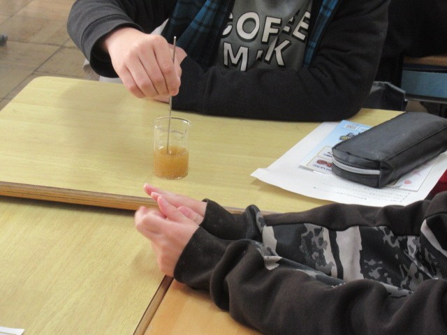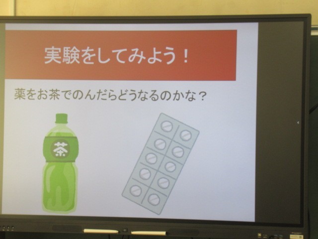 今日は6年生の薬物乱用防止研修がありました。お茶で薬を飲むと胃の中でどんなことが起こるのかを分かりやすい実験で確かめていました。薬は使い方を間違えると大変危険なもの。実際に自分の目で見て、その理解を深めることができました。