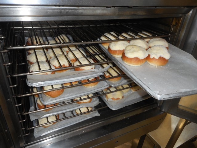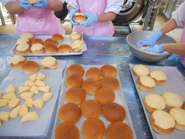 メロンパンは手作りしました。こねて作ったクッキー生地をパンにのせ、網目をつけて焼くことで、焼きたてサクサクに仕上がりました。朝から先生も子供も楽しみにしており、給食の時間になるとメロンパンのにおいだ!と嬉しそうにしている姿が見られました。クラスを回っていると、パン屋さんのよりおいしい!きなこ揚げパンやジャンボ餃子より好き!と大人気でした。生地の固さやオーブンでの焼き加減など、様々調整しながら調理員さん総出で作った甲斐がありました!