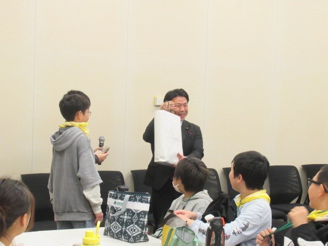 お昼ご飯は、議員会館で食べさせてもらいました。そこで紹介議員さんが質問タイムを設けてくださり、ここでも国会や国会議員の活動についていろいろと教えてくださいました。最後には6年生が袋詰めした銀杏も50袋ご購入いただき、世界の子供たちのために活動している本校の取り組みについて褒めていただきました。