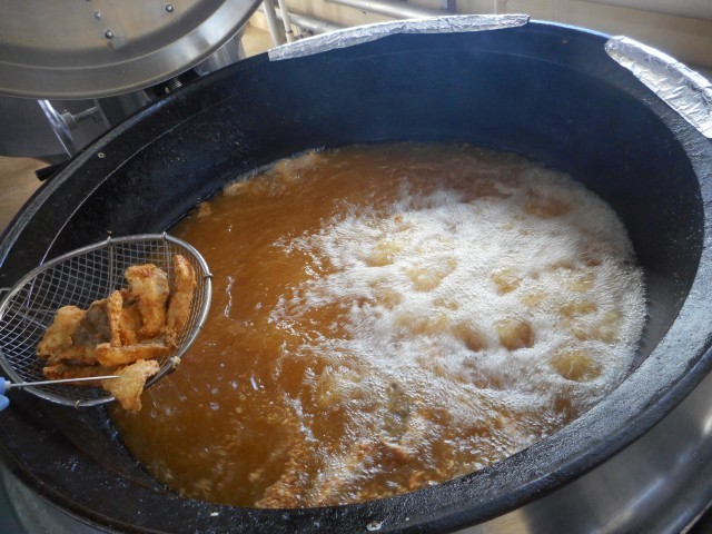 魚の竜田揚げには、ホキを使いました。しょうがとうすくちしょうゆで下味をつけたあと、粉をまぶして油で揚げました。今日の一番人気はこのお魚でした。おかわりできた時のためにご飯をあえて残していたり、魚が苦手だけど食べたら美味しかったようでおかわりできていたりする子がいました。かき玉汁は、昆布とかつお節で出汁をとって、ふわふわの卵に仕上げました。日中でも冷たい風が強かった今日にぴったりの汁物でした。