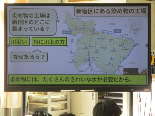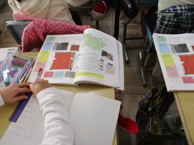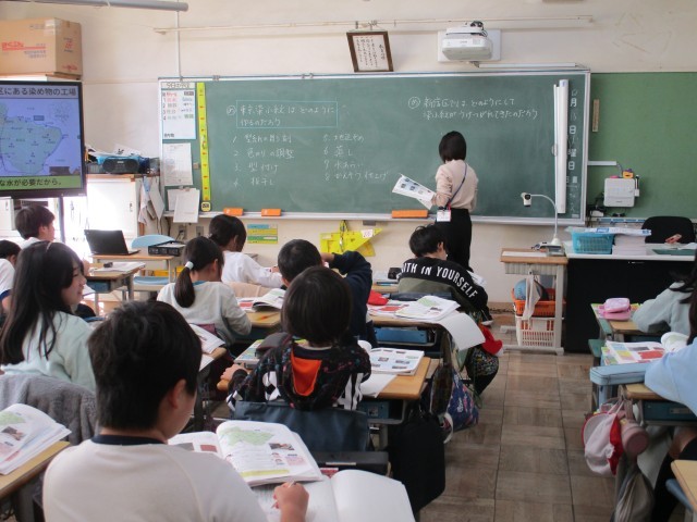東京都の様々な地域には伝統工芸品と呼ばれるものがあります。どの品も歴史があり、そこで暮らしていた人たちの思いが詰まっています。その思いを学ぶことが社会科の大きな目的です。どの子も真剣に資料を調べ、自分の意見を発表しながら学んでいました。
