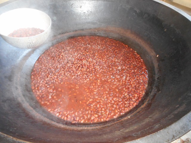 きょうのおせち給食は、炒り鶏と金時豆の煮豆です。炒り鶏は、いろいろなものを一つの鍋で煮ることから、一族仲良くいつまでも楽しく暮らせますように、との意味が込められています。金時豆の赤い色は悪いことを遠ざけてくれる力があるといわれています。また、お正月に豆を食べるのは、元気で丈夫に過ごせますように、何事も一生懸命に頑張れますように、という願いが込められています。煮豆は、小豆みたいで好き!後味が苦手…など様々な感想がありました。いろいろな味を経験してもらいたいなと思います。