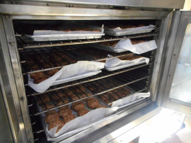 きょうは、学習発表会スペシャルメニューです。給食室で腕を振るって、ハンバーグを作りました。ハンバーグを作るには、玉ねぎなどの野菜を炒めて冷まし、ひき肉をこねたところに加え、豆乳に浸したパン粉を入れてよく混ぜます。一つ一つ丸めて小判型にしたら、オーブンに入れて焼きます。そのハンバーグの上からかけたトマトソースも給食室の手作りです。子どもからこれ豆腐入ってる?と聞かれるほど、ふわふわで食べやすい固さに仕上がりました。スープには、ABCマカロニを入れました。アルファベットがわかる学年は、自分の名前を作ろうと楽しみながら食べていました。