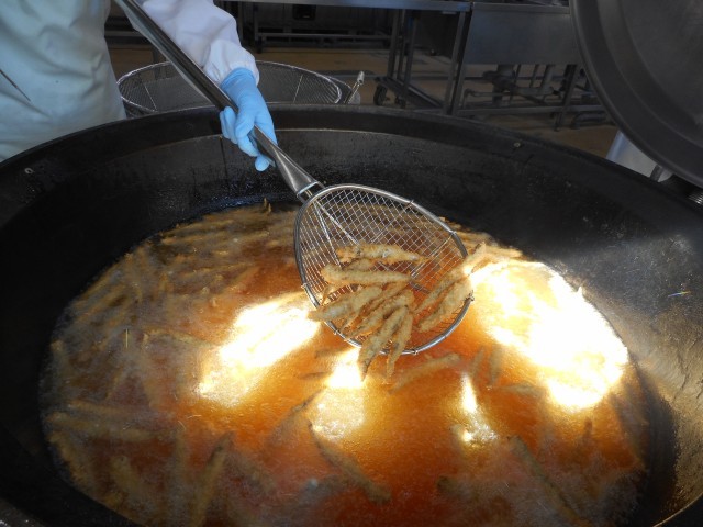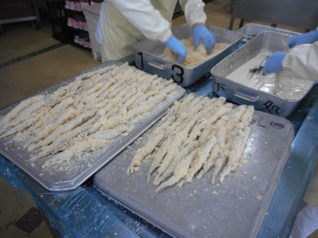 豆腐のチリソース煮は、豆腐が主役のおかずです。豆腐は、大豆から作られていてわたしたちの血や肉になり、体をつくる栄養がたっぷり入っています。肉にも負けないほどの栄養があるので、大豆は「畑の肉」とも呼ばれています。辛い、甘い、酸っぱいが混ざり合ったチリソースの味が、ご飯と一緒によく食べてくれていました。ししゃもは、給食でおなじみの小魚ですね。この日は、パン粉につけて油で揚げて、フライにしました。サクサクした食感が美味しい!という感想を聞けました。