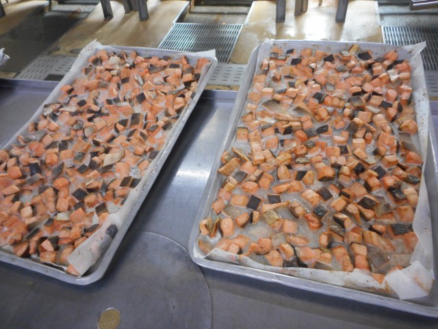 スタミナ納豆は、30年ほど前に鳥取県の学校給食のメニューに登場しました。納豆が苦手な子でも食べやすいように、と工夫したそうです。南大谷小の児童にも人気で、子どもたちも朝から楽しみにしてくれていました。案の定、どの料理よりも一番になくなっていて、ご飯もすすんで食べていました。じゃがいもと魚のみそバター煮は、マスというお魚を入れました。みそバター味で食べやすく仕上げました。くだものは、今が旬の『紅ほっぺ』という品種の「いちご」を使いました。いちご好き!甘くて美味しかった!と好評でした。
