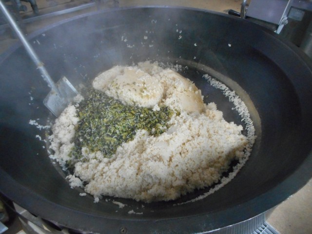 牛乳、菜飯、味噌おでん、甘酢あえ、くだもの(りんご)