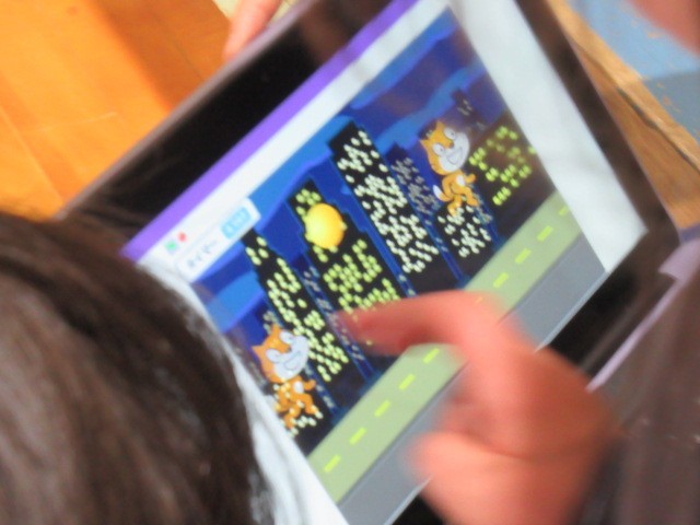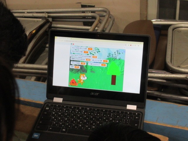 休み時間にパソコンクラブが自分たちで作ったゲームを利用してゲームセンターを開いてくれました。たくさんの子供たちが集まってきて、楽しそうにゲームをし、クラブの子たちはそれを嬉しそうに見ていました。ゲームの説明もシンプルでとても分かりやすく、集まってきたお客さんはみんな満足そうな顔をしていました。