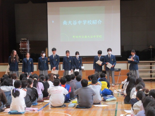 今日は南大谷中学校の生徒会の皆さんが来て、6年生に「中学校ってこんなところだよ。」と紹介してくれました。6年生にとってはわかりやすく親しみやすい内容で、紹介してくれた中学生の優しさ、温かさもあって、不安が少し和らいだのではないかと思います。お忙しい中、ありがとうございました。