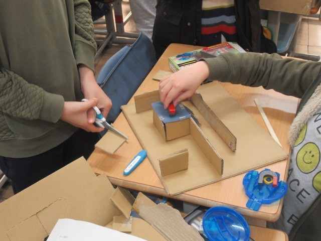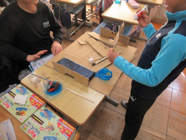 図工のような理科の時間です。学習した磁石の性質を使ってのおもちゃ作りなのです。友達同士で協力しながらなかなか面白いものを作っています。いろいろ考えながら作ることが楽しいんですよね。