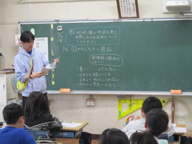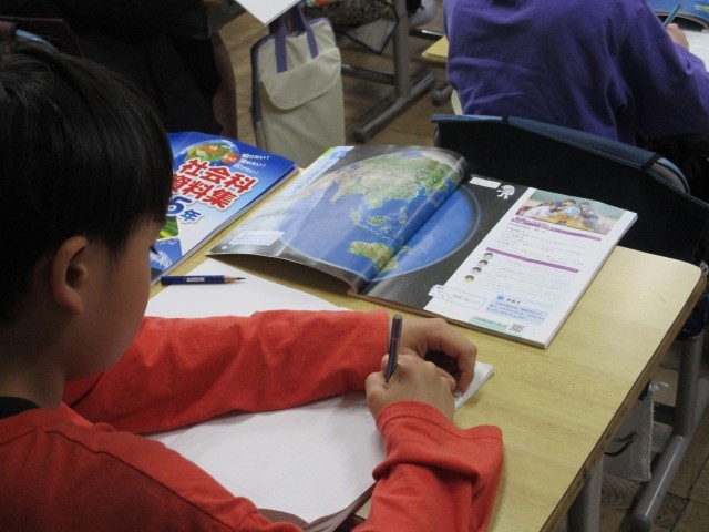 5年生では、視野を広げて地球全体の様子を見ていました。3つの大きな海洋があることや、大陸から見たら「日本は小さい国」ということを実感している様子でした。