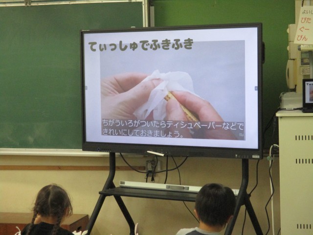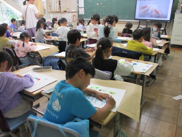 今日は1年生の子どもたちが、図工で鯉のぼりの「うろこ」を作っていました。