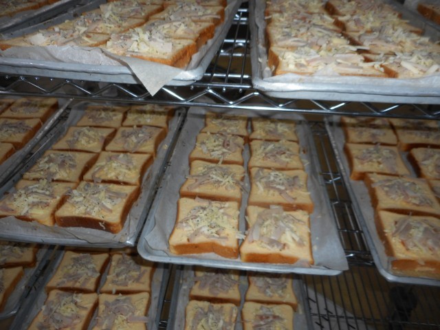牛乳、クロックムッシュ風、シャキシャキポテトサラダ、パスタ入り野菜スープ
