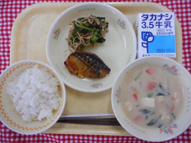 きょうの魚はさばです。さばには、カルシウムの吸収を助けるビタミンDが含まれています。きょうはカレー味をつけて焼きました。子どもたちも食べやすかったようで、低学年の児童もまた食べたい!という子が多かったです。のり酢あえや豆乳みそ汁には、たっぷりの野菜が入っています。いつも、給食と同じくらいの量の野菜を食べると、体の調子がよくなります。春は、一日の中で気温差が激しく、体の調子も乱れがちです。しっかり食べて元気よく過ごせる日が増えますように。