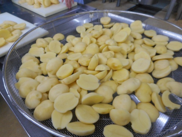 ベイクドチーズポテトは、じゃがいもを2等分にして蒸したあと、バターをからませ、チーズをのせてオーブンで焼きました。美味しいからおかわりじゃんけんする!という子が多くて嬉しかったです♪スープには、今が旬の春キャベツをたっぷり使いました。冬のキャベツに比べて、葉の巻きがゆるくふっくらしており、シャキシャキした歯ごたえとみずみずしさがあります。また、風邪予防や疲労回復に効果的なビタミンCが多く含まれています。くだものはカラマンダリンです。甘みとほどよい酸味がギュッとつまっています。旬の味を味わってくれてよかったです。