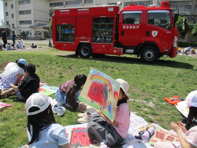 4/28【2年生・わかば学級】はたらく消防写生会