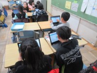 オンラインによるこういった集会も慣れたもので、教室では声を出さずに拍手をしたり、クイズの答えを指で表したりして楽しんでしました。