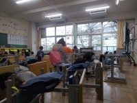 2年生があるクラスは国語の書写を行い、あるクラスは道徳を行っていました。