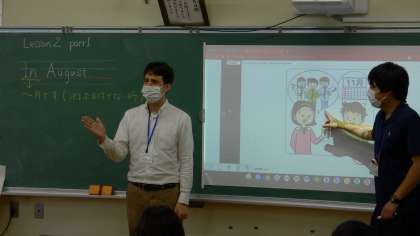 6年生が英語の学習を行っていました。 8月などの月の言い方の英語を学んでいました。