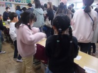 わかば学級の1年生が生活単元学習を行っていました。 刺繍を利用して手先の作業を行いました。