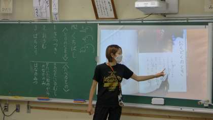 1年生が国語の学習を行っていました。 音読のいわゆる○読みの練習を行っていました。