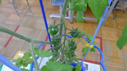 生活科 わかば2年 公開日 2021/06/07 更新日 2021/06/07 学校生活 わかば学級の2年生が生活科の学習を行っていました。 トマトの観察です。今年は成長が早くもうすでに実をつけていました。