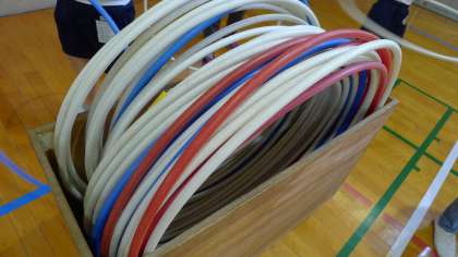 体力テストを実施していたようですが、私が行ったときには終わっていてみんなで縄跳びやフラフープを行っていました。