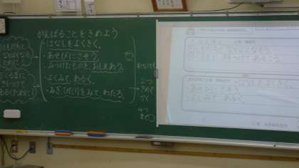 1年生が学活の学習を行っていました。 明日の遠足のめあてを決めていました。楽しみですね。